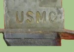 The brown leather scabbard with the USMC logo and letters was used after WWII. Possibly during the Korean conflict