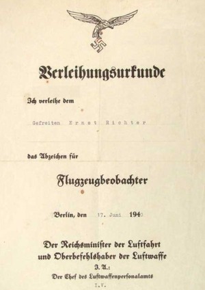 The following section contains several examples of the WWII German Observer badges.