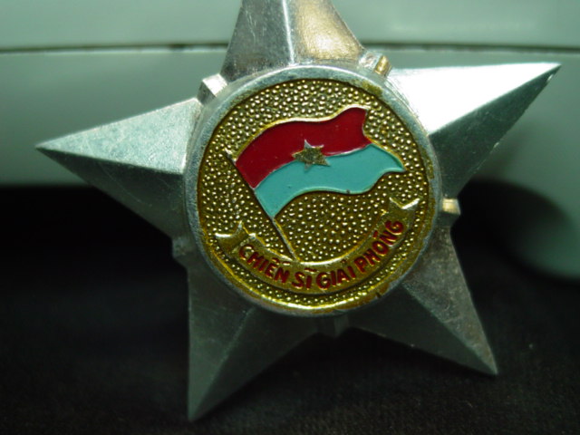 Of thin metal construction. Stamped medal. Bears the North Vietnamese flag in the center.