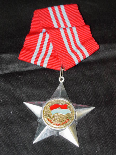 This is the Vietnamese Victory decoration medal. Issued by North Vietnam to troops who participated