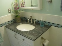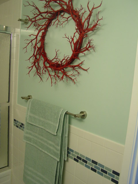 This is the bathroom. Soft pastel colors and Southwestern decor. Complete with all towels,