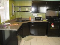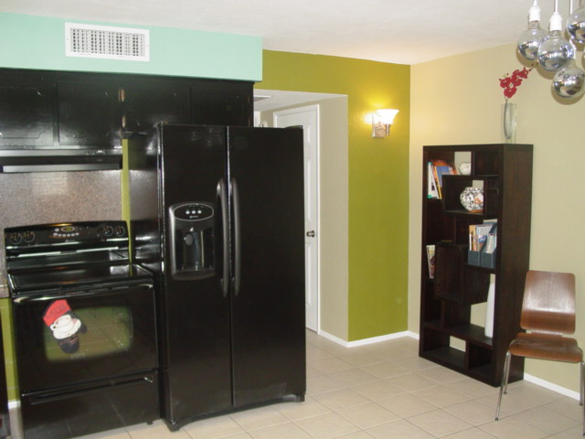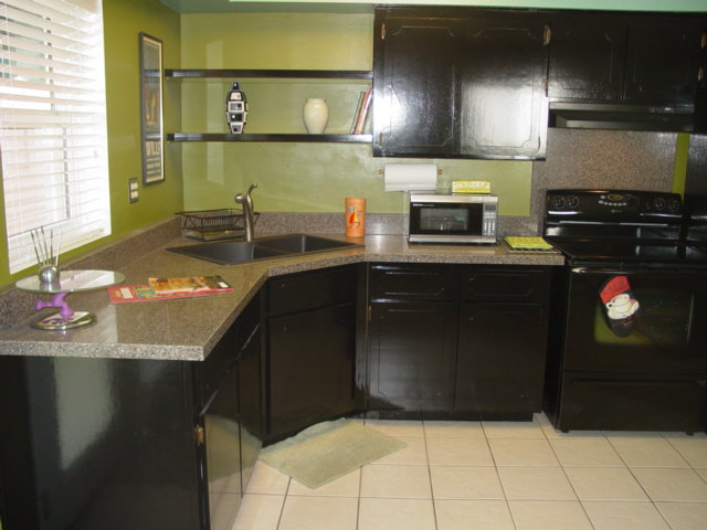 This is the kitchen. Complete with brand new Maytag appliances. A mix of elegant dark colors with