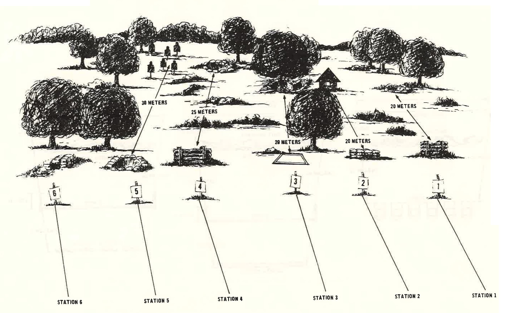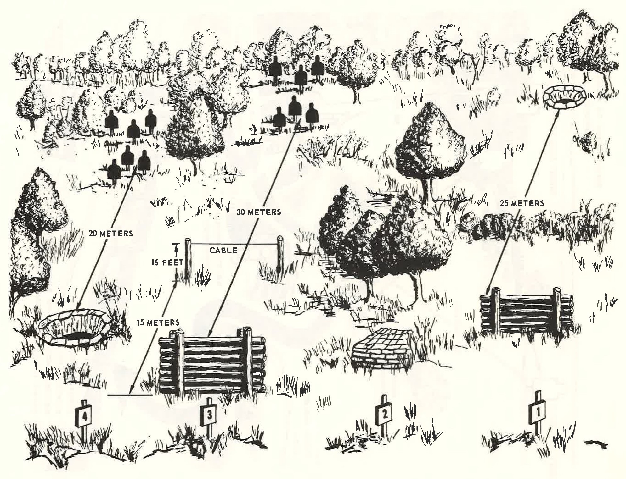 This station is located 25 meters to the left of station 3. It consists of a log wall and a foxhole located 25 meters from the wall.