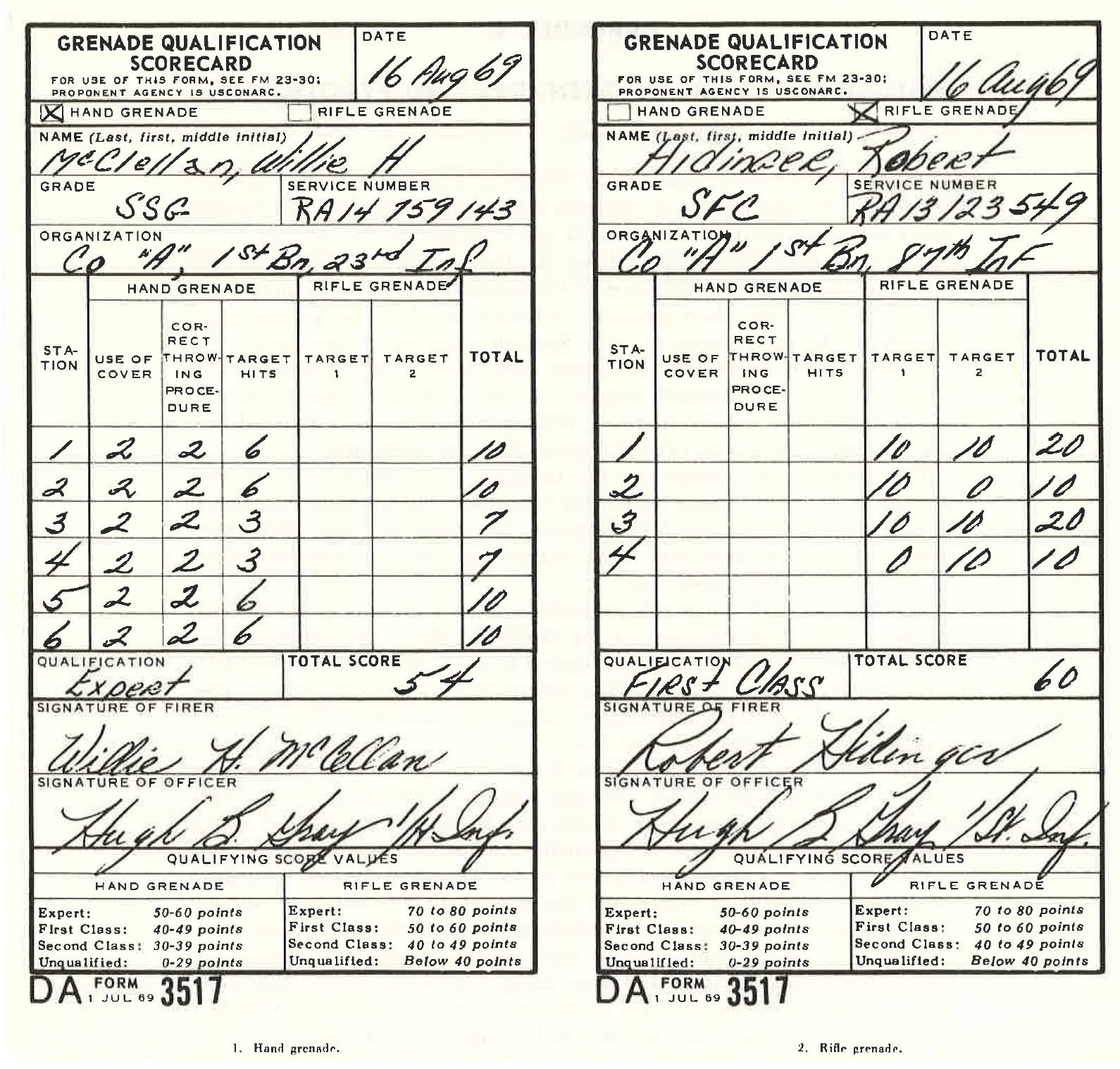 Personnel may be tested on their proficiency with grenades by negotiating grenade qualification courses. The grenade qualification courses measure individual proficiency in the use of hand and rifle grenades, provide additional grenade training, and instill motivation in grenade training through competitive spirit. Separate courses are run for hand and rifle grenade qualification. DA Form 3517, (Grenade Qualificarion Scoreboard), (Figure 40) is for scoring the hand grenade assault/qualification course and/or the rifle grenade qualification courses. Supply of DA Form 3517 will be requisitioned through normal publications supply channels.