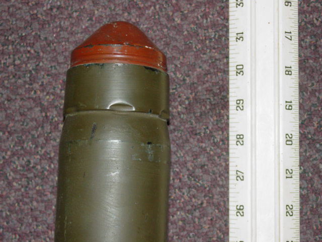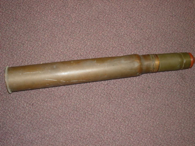 The item featured here is a US Army artillery shell. The bottom is dated 1944. The tip of the piece