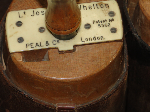 Wooden inserts hold the shape of the boots. Named to Lieutenant Joseph M. Whelton.