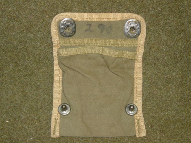 pouch. Originally developed in WWI. of canvis construction. Reinforced edges. Metal hanging device.