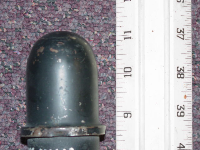 The practice rifle grenade was made of sheet metal. Painted black. The lower end has an opening where the muzzle of the rifle is