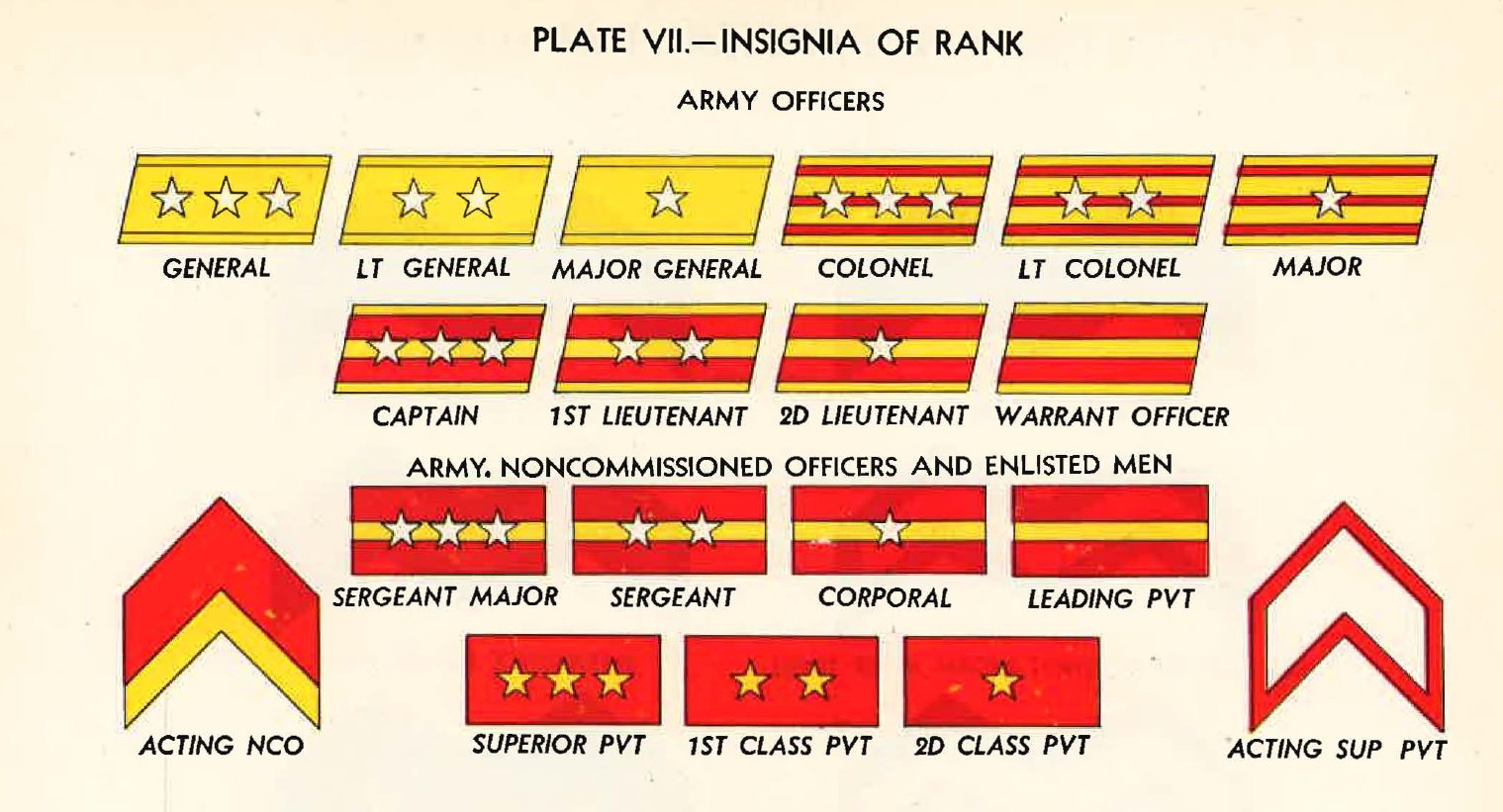 ![]() Figure 148. WWII Japanese Army rank insignia chart for officer and enlisted men. |