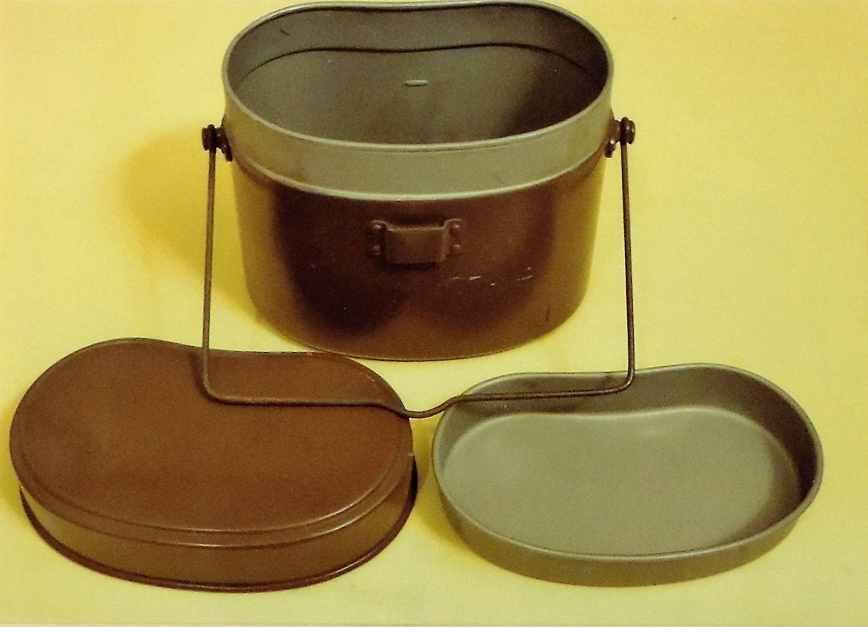 The canteen cap operated by pressure. It had a loop on top so the leather securing strap could be connected. Some models were issued with an additional cover. Made of aluminum or bakelite. In the shape of a small cup as it would serve as one. A rare model of the cup came with a built-in compass. In similar fashion to the U.S. binocular case which also had a built in compass on top.