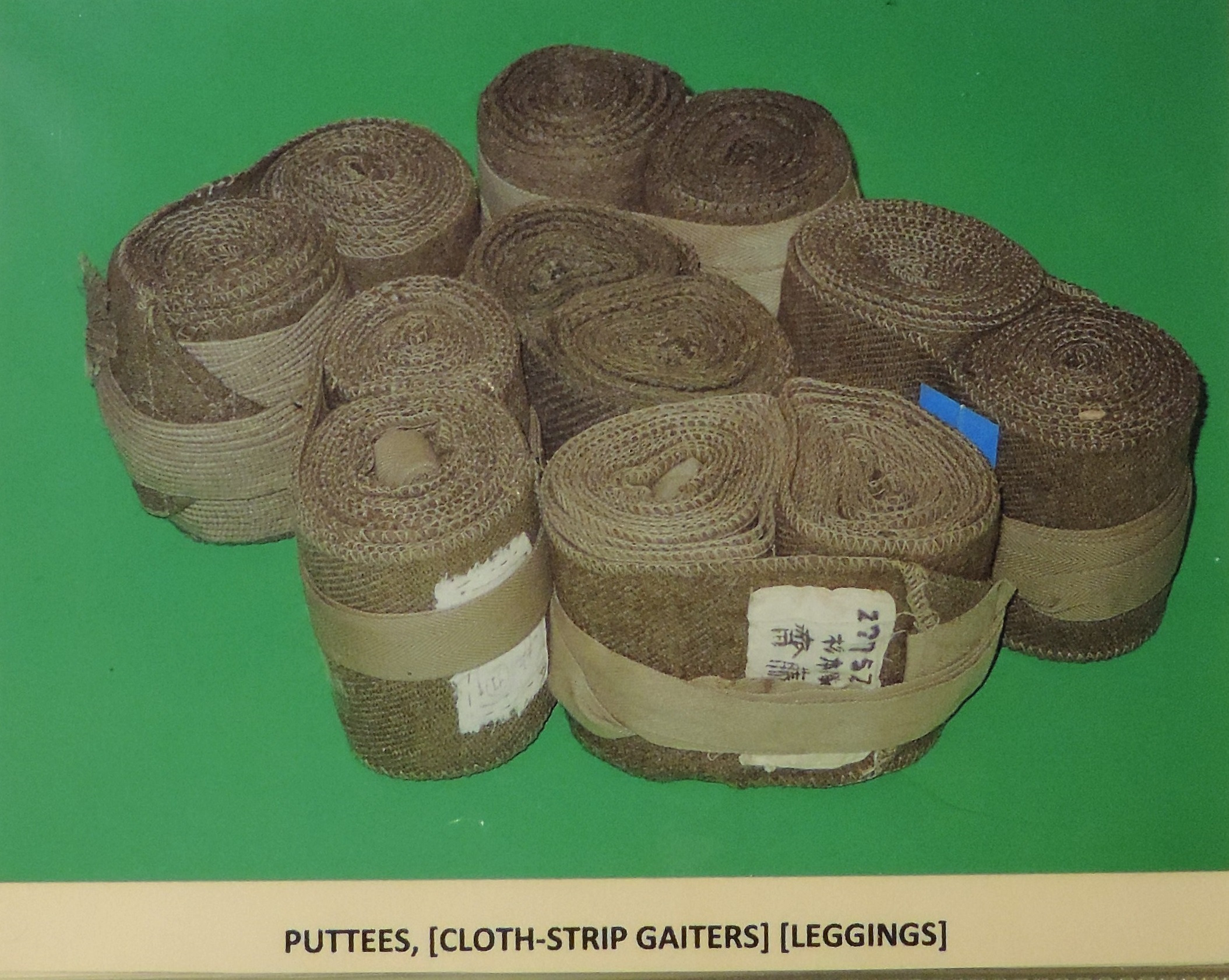 In the field the Japanese now ordinarily wear semibreeches cut high in the waist and held up by the webbing straps. Wrapped spiral puttees usually are worn by dismounted enlisted men. Officers wear puttees, boots, or leather leggings, with either breeches or semibreeches. Long trousers without cuffs were worn with the M-1930 coat, but were covered with puttees, boots, or leggings in the field.