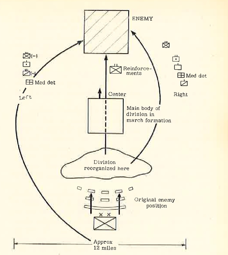 With the above formation, the division commander expects, if anticipatory plans have been correct, to execute an envelopment of the hostile left flank.