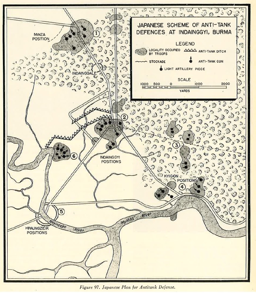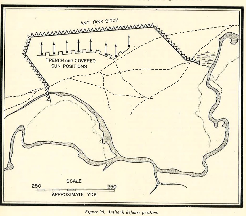 (1) The antitank methods adopted by the Japanese Army in antitank measures follow normal modern practice, except that the army as a whole is weak in antitank weapons. More thought, however, is given to the simpler forms of antitank defense, such as the use of antitank mines, incendiary grenades, gas grenades, obstacles, and the employment of special infantry assault squads (tank fighters).