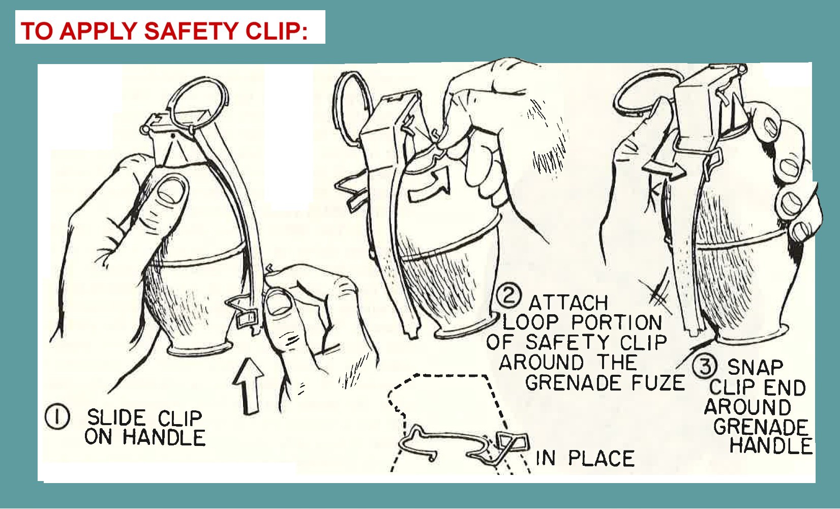 Figure 3. Attaching the hand grenade safety clip.