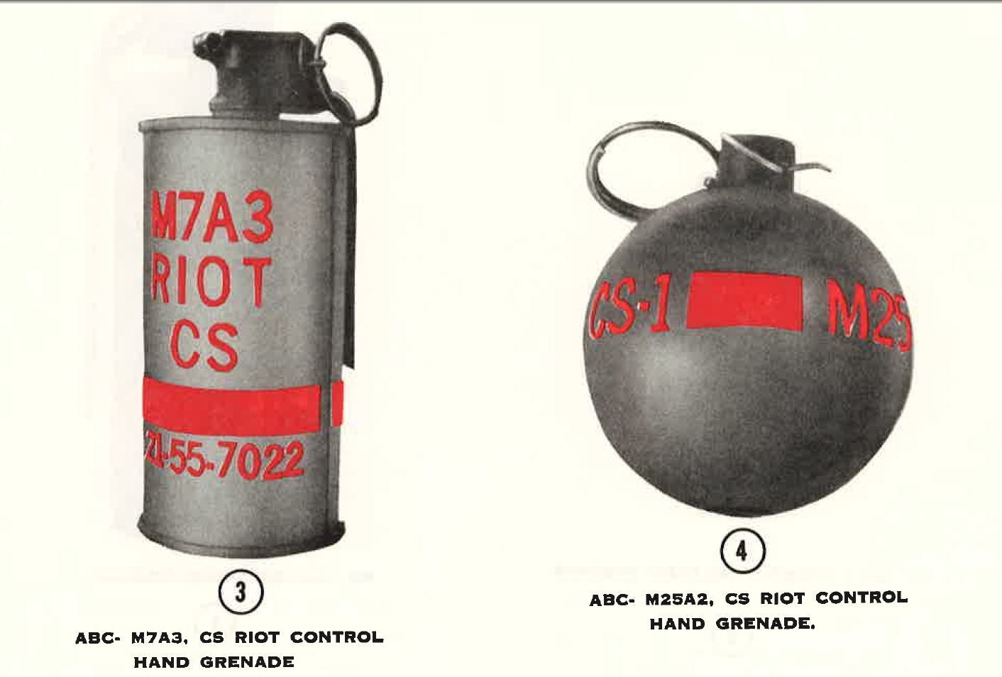 24. ABC-M7A2 and ABC-M7A3 CS Riot Control Hand Grenades.
