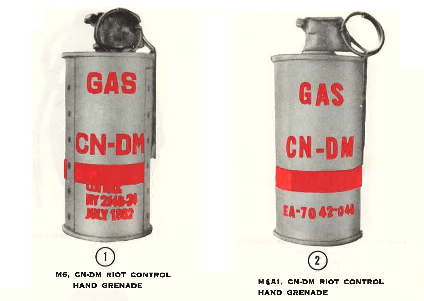 22. M6 and M6A1 CN-DM Riot Control Hand Greandes.