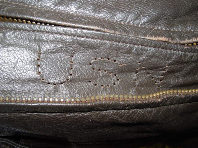 with a leather patch. The initials USN are hole punched along the zipper flap.