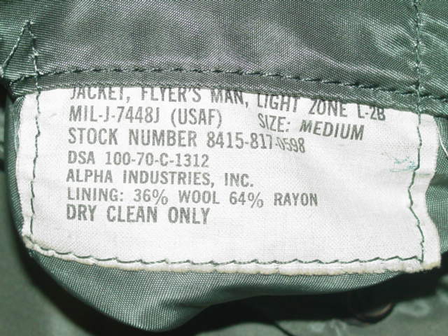 This is a US Air Force L-2B flight jacket. Of nylon construction. Dated 1970. As used during
