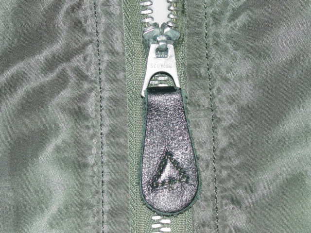 The zipper is of aluminum construction and has a leather pull-tab attached to it.