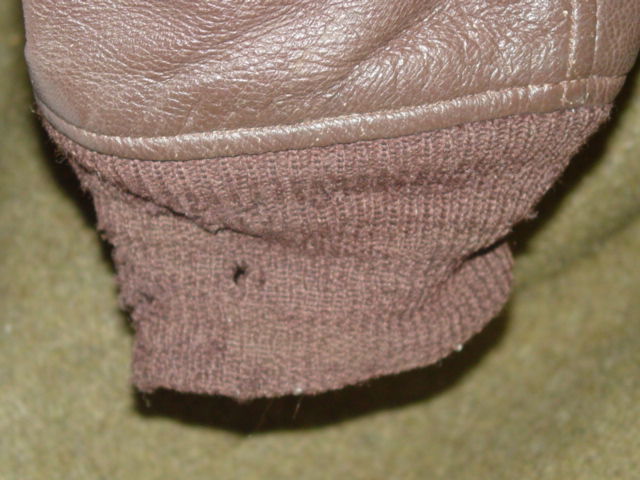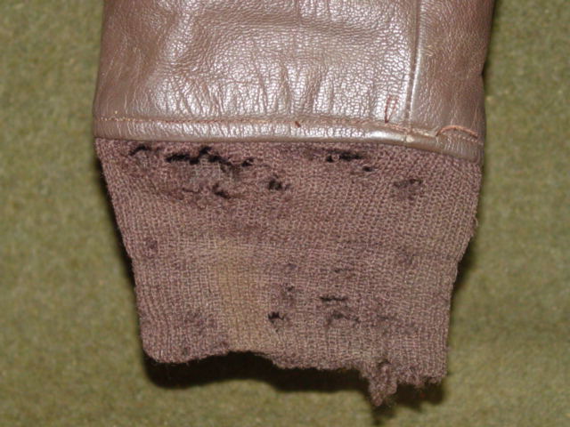 The cuffs and waist band show damage. These areas were often torn when in use.