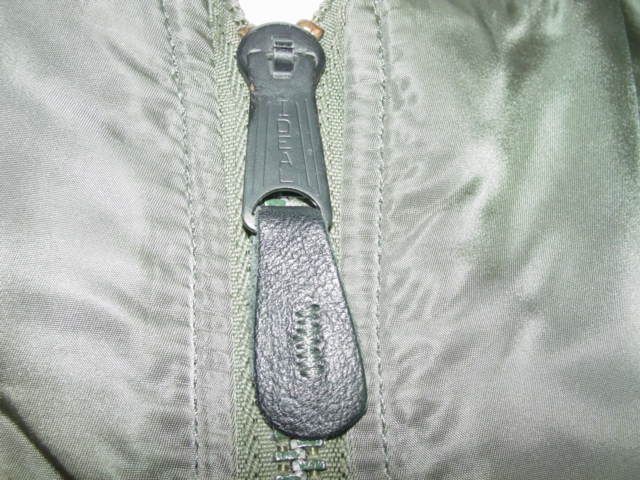 This is a US Air Force flight jacket. Type MA-1. Of nylon construction. Two front pockets in