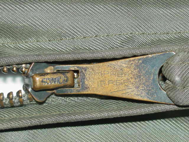 letters. The zipper is manufactured by "Gripper zipper". Two front pockets. Sleeve pockets and