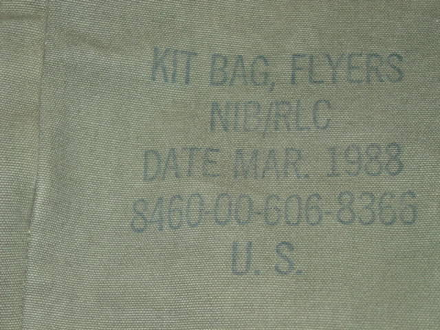 This is a pilot's flight bag. As issued by the US Air Force during the invasions of Granada and Panama. Of canvis construction. The bag is of heavy duty construction. It has two handles. markings are applied to the side using blue ink.