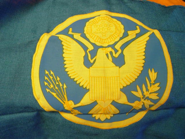 The item featured on this page is a US Army guide. of lavander color with the US Army eagle displayed in yellow color. Guides like this one are employed when soldiers go running or marching. It is attached to the end of a flag pole.