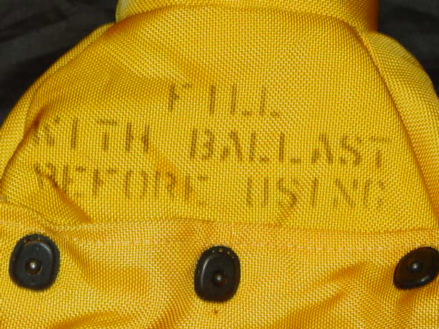 The markings on the bag read "Fill with ballast before using".  A switch is provided