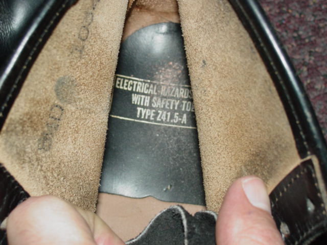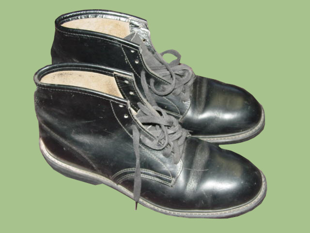 The item featured here is a set of US Navy electrician black leather shoes. Insulated type.