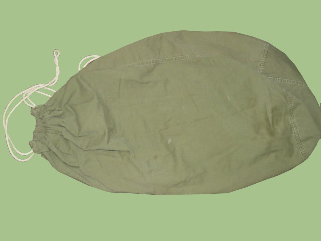 The US Army established a series of collection points to do the laundry for soldiers. Each person was issued an OD canvis bag to place all dirty laundry so it can be cleaned. The item featured here is one of those bags.