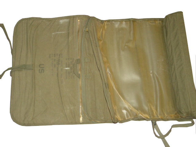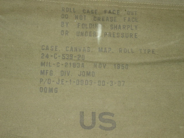 The item featured in this page is a US Army map case. Of green canvis construction with a