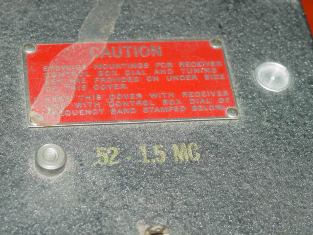 A couple of metal tags are riveted to the body of the radio. One of the tags is of red color and