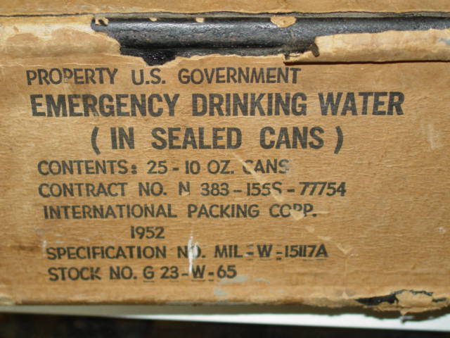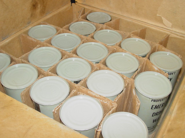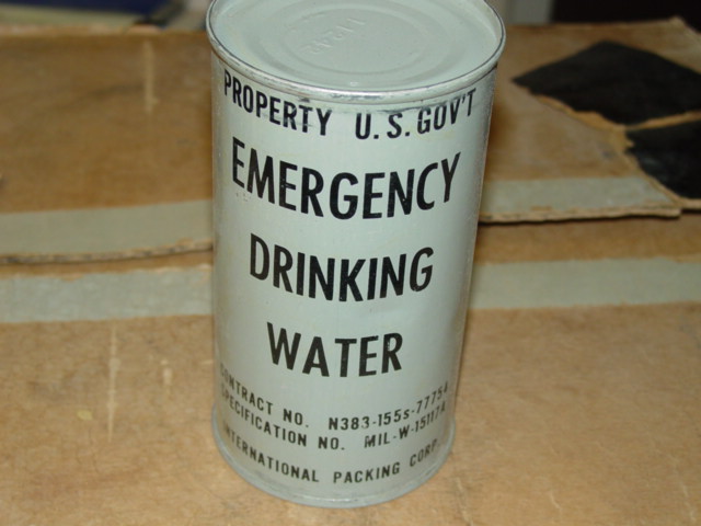 where water was canned and distributed in survival kits. The cans were painted gray. They were shipped