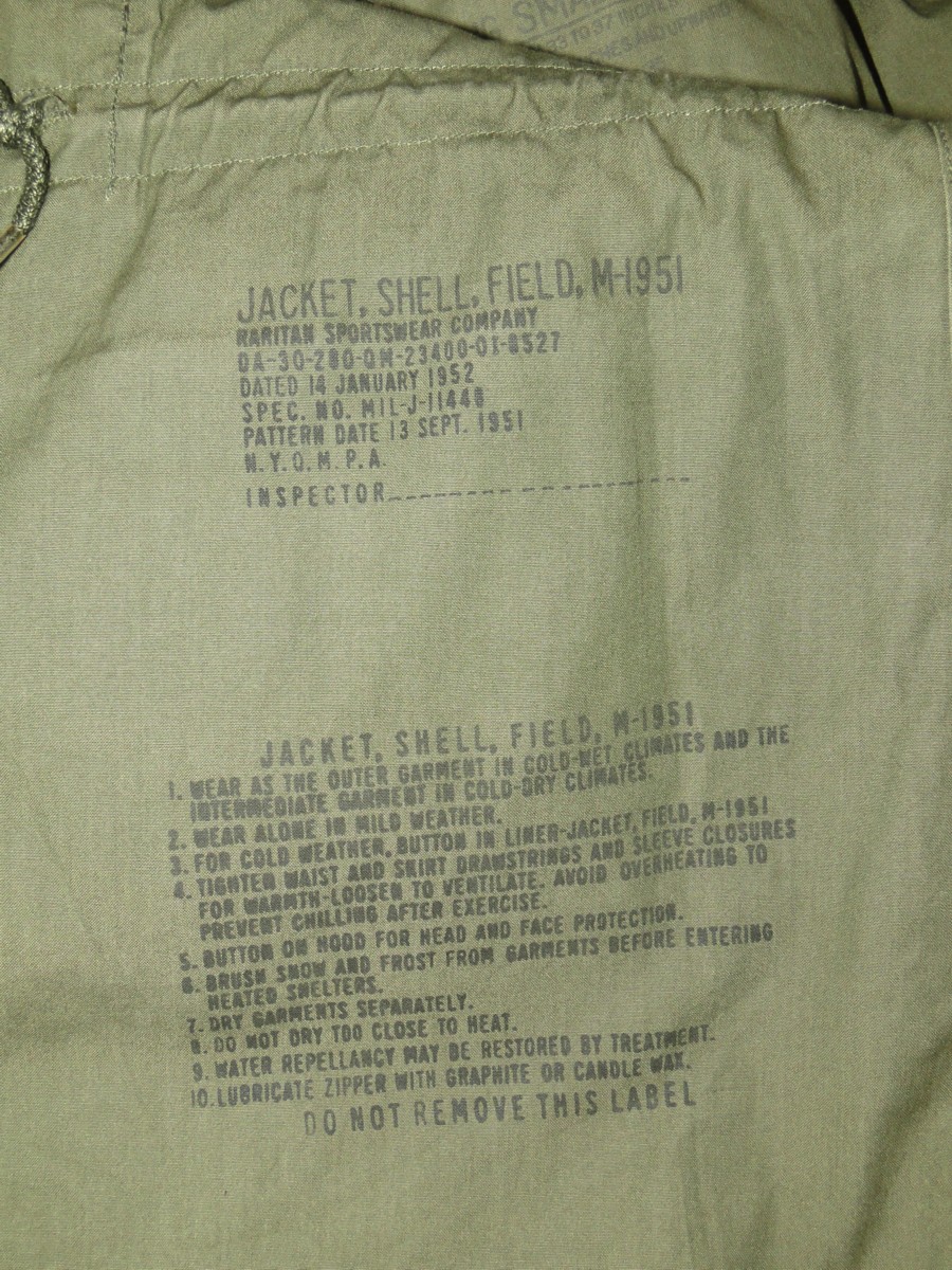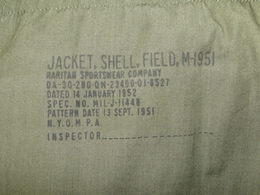 Unlike other American jackets, the M-1951 field jacket did not have a tag.  Instead the information was stamped with Black ink.