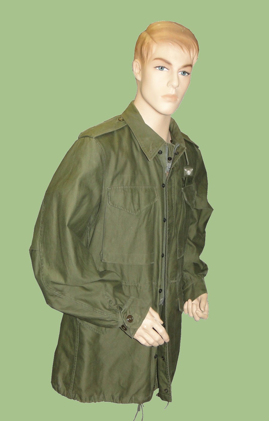 It was based on the M-1943 field jacket that was replaced by the similar M-1950 field jacket that had inside buttons for a button-in liner.