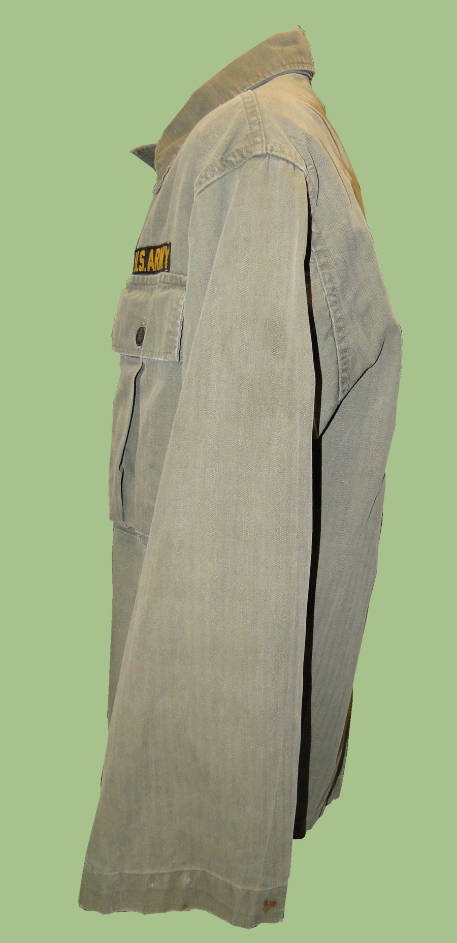 This is a combat shirt employed by the US army. Of HBT (Herringbone Twill)construction. The buttons are of metal