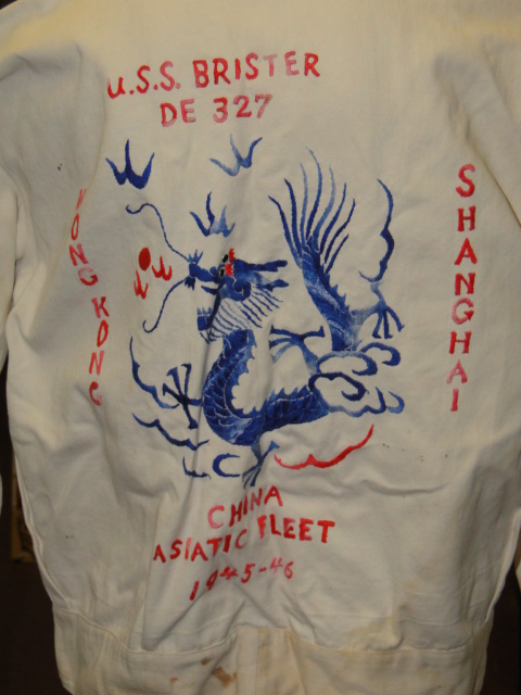 buttons. The back is embroidered with a dragon. China Asiatic fleet 1945 - 1946. The upper section reads U.S.S. Brister