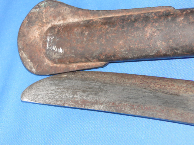 is divided in three sections and is integrated with the cross guard. The blade is in good condition. markings are