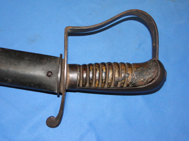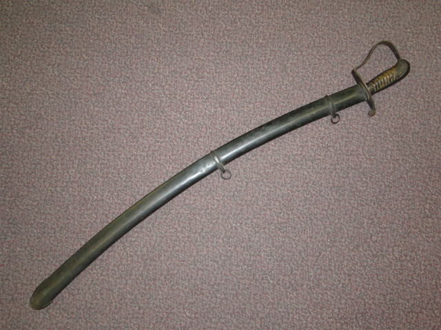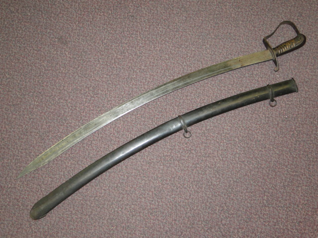 This is a US Army officer sword Model 1812 sword. Complete with the scabbard. Black leather handle with a dove head