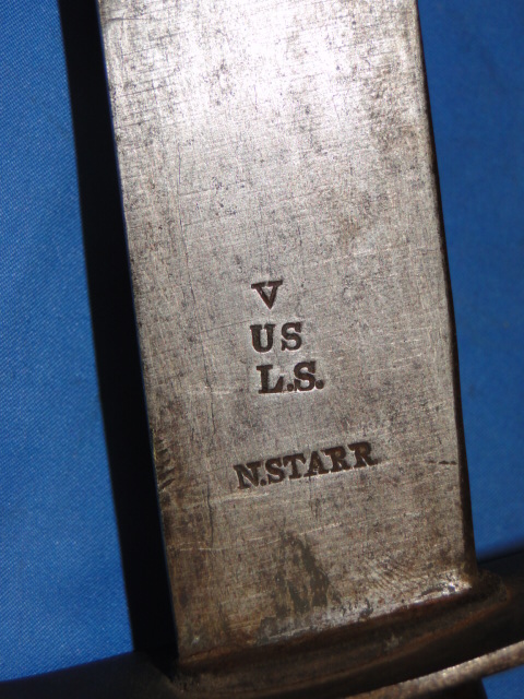 Bowie style. Markings are found on one side of the blade. They read "V US L.S. N.Starr".