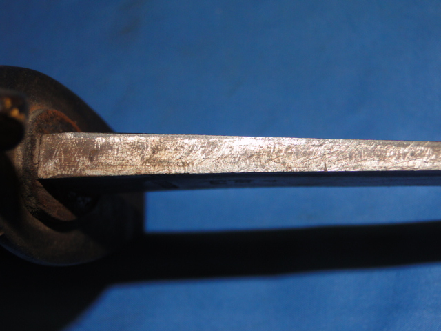 pommel. Simple single hand guard integrated into the cross guard. The blade is in very good condition. The tip is