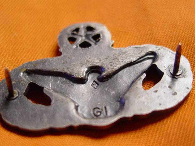 to each side of the eagle. A star is placed above the eagle. Clutch back construction.