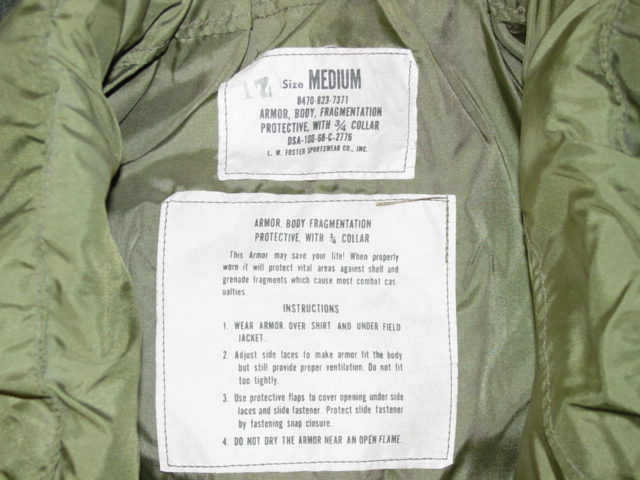 Early models had metal plates inserted in the body of the vest. Later models used different types of