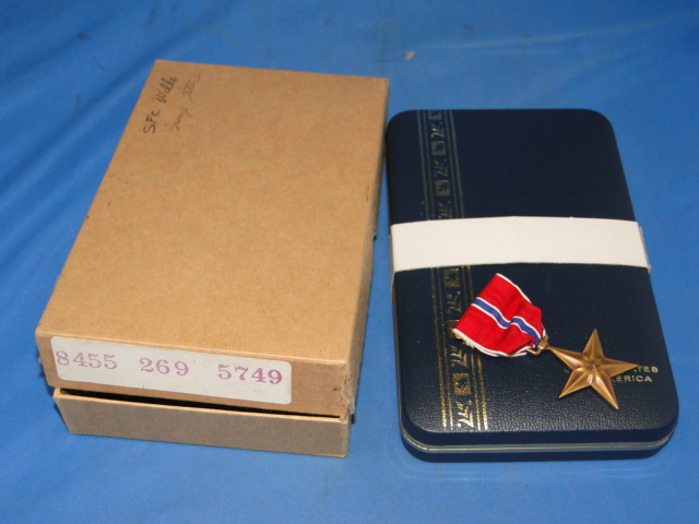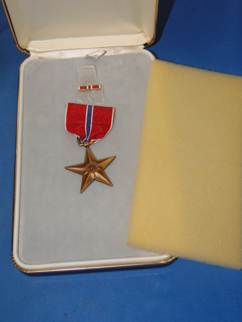 service recognition document, photograph of the commanding officer issuing the award to the soldier and the Bronze Satr itself.