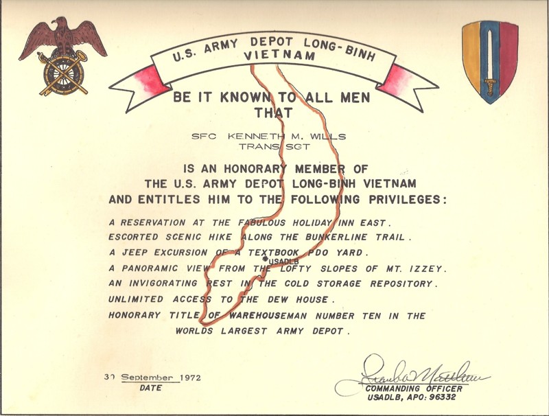 a Vietnam patch. A scroll in the center reads "US Army Depot Long-Binh Vietnam".