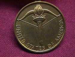 The back of the medal shows the image of a crossbow. The words "United States of America" border