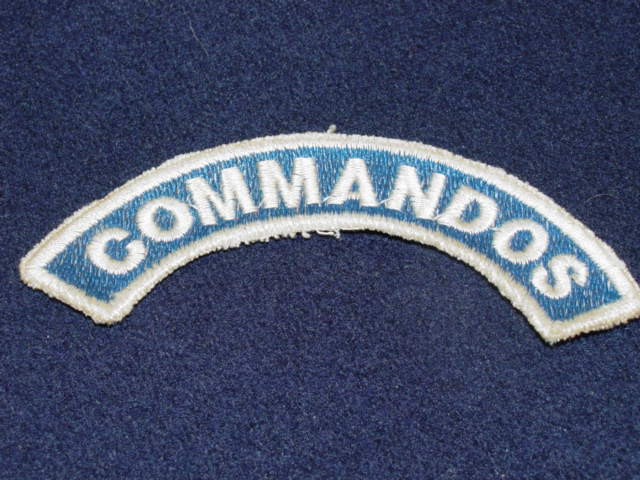 construction.  Light blue background with a white border and white letters that spell the word "Commandos".
