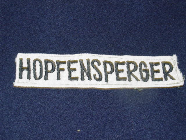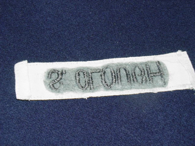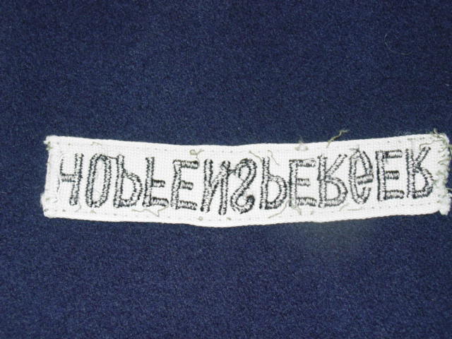 The design consists of a rectangular canvis strip with the last name of the soldier written on it.