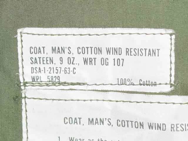 The jacket retains all the original tags. They are white with black letters. The tag in the
